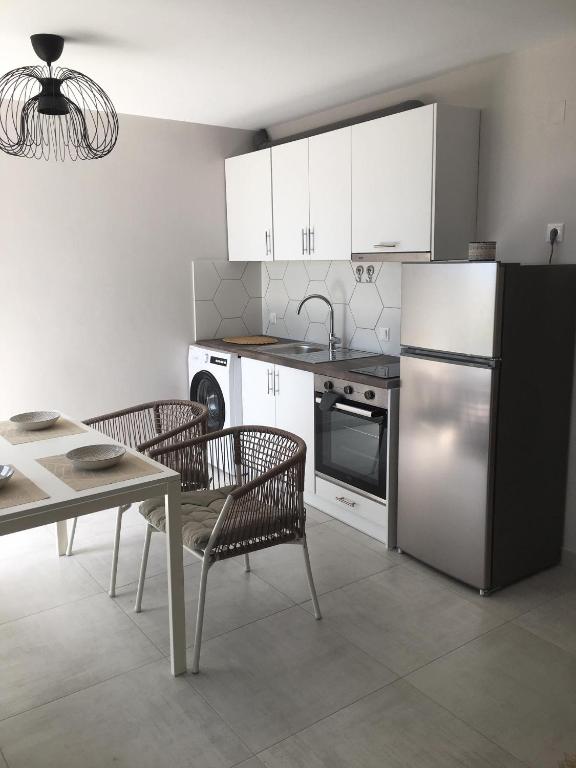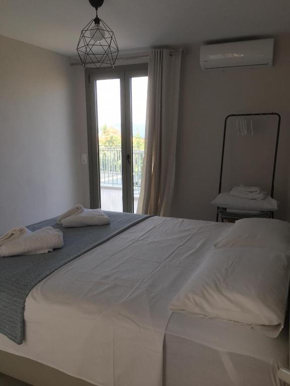 Dion Apartments are located in the central part of Paleros, only 10 minutes walk from the bustling city square. The unique position provides a beautiful view of the village and the sea. Each room can accommodate up to 4 guests, and it's fully equipped with a kitchen, washing machine, air conditioners, Wi-Fi and TV. Four of the apartments have a separate bedroom and one sofa bed in the living room space. The apartment on the second floor, has two separate bedrooms and is more spacious/exclusively furnished.
